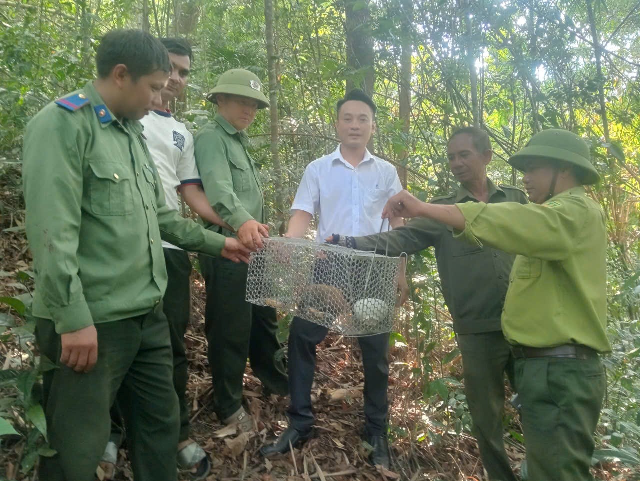 Hạt Kiểm lâm Đức Trọng phối hợp với UBND xã Đức Trọng tiếp nhận cá thể tê tê Java quý hiếm do người dân tự...
