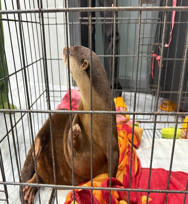 Hình ảnh Kiểm lâm viên Hạt Kiểm lâm Đức Lập chụp trong quá trình chuyển giao 01 cá thể rái cá vuốt bé cho Vườn quốc gia Bù Gia Mập