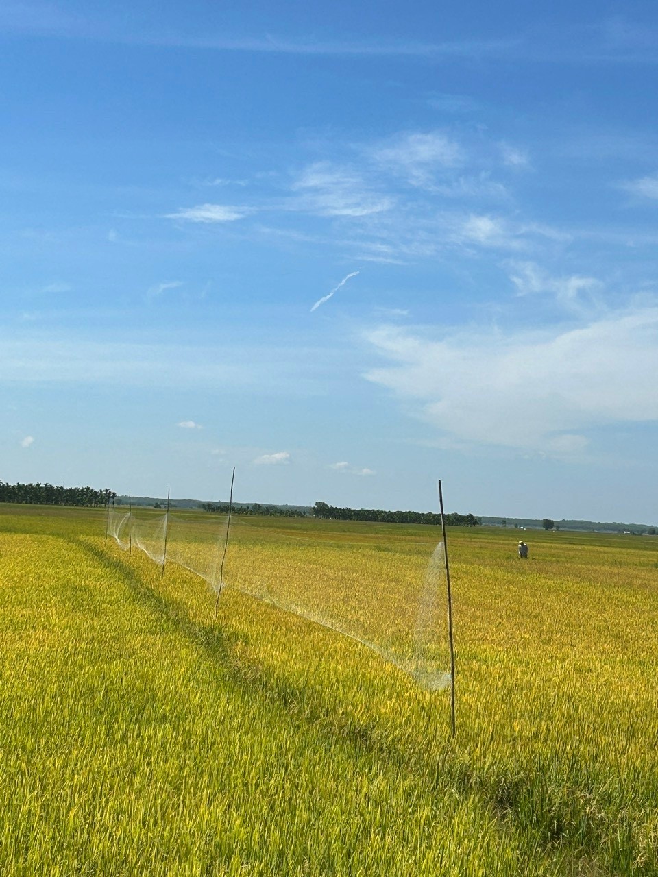 Lưới bẫy chim hoang dã trên cánh đồng lúa xã Bắc Ruộng